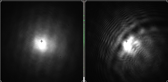 Q13: 為什么加了校正相位,直接觀察反射光斑反而變差了,如下圖左圖為不疊加校正相位,下圖為疊加校正相位。 以及為什么不疊加校正相位,同時(shí)還可以得到不錯(cuò)的衍射圖像。 |